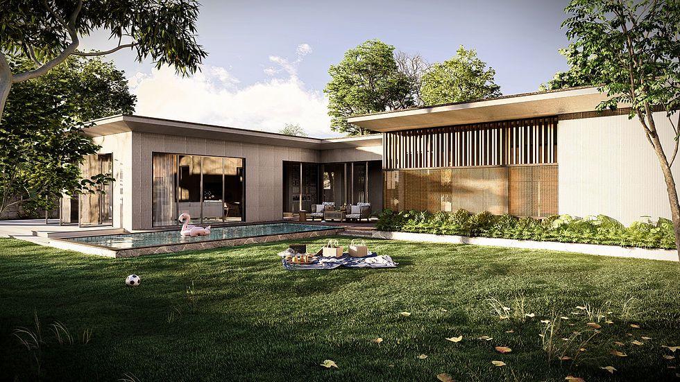 Curated openings provide breathtaking views of the surrounding greenery, while the open-plan layout ensures a seamless flow of light and space. The interiors, crafted with natural materials and earthy tones, offer warmth and elegance. Outdoor decks extend the living space, perfect for relaxation and enjoying the serene landscape.